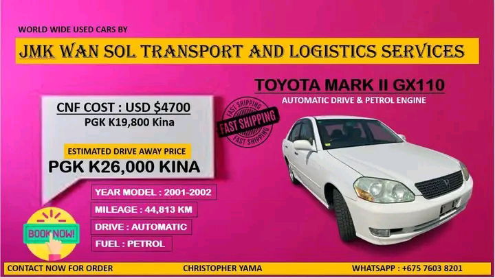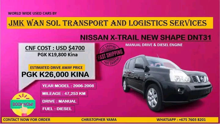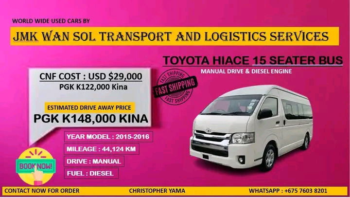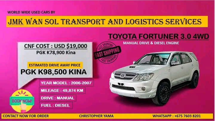 *BRAND NEW 2025 MODEL* TOYOTA HILUX TRAVO DOUBLE CAB-PRE-RUNNER *CNF PRICE* USD $43000=PGK K181,800 (Car Cost Plus Shipment from Japan to POM/LAE Port) *Estimated Drive Away Price* PGK K202,000 (Including Customs Clearance) Car Details. ✔Engine:➡ 2800cc ✔Model: ➡2025 ✔Transmission:➡ Automatic ✔Milleage:➡ 00,000 km ✔Fuel:➡ DIESEL Contact us on 📢📧📞🌎 📞WATTAPP +675 7603 8201 📧jmkwansoltrans@gmail.com Visit website:www.jmk-wan-sol-trans.com